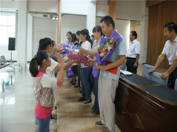 表彰大會(huì)在學(xué)生代表熱烈的獻(xiàn)詞祝福下正式開始, 張校長(zhǎng)宣讀了對(duì)王懷寧等10位優(yōu)秀教師和4位優(yōu)秀班主任的表彰決定。校長(zhǎng)毛丕顯同志向受表彰的老師頒發(fā)了榮譽(yù)證書。學(xué)生代表向受表彰的老師敬獻(xiàn)了鮮花。